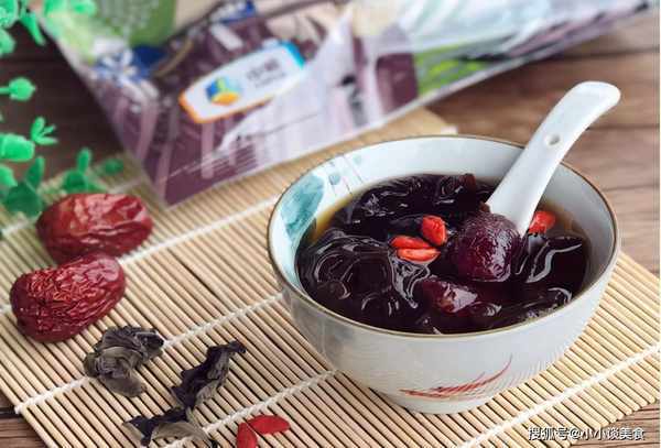 材料:干黑菇30克、红枣10颗、枸杞子7克、红糖