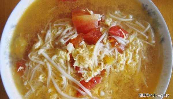 做法:1、金针菇提前洗净,用水浸泡3-4小时;如果用,取出,挤干水分,切成两三块;葱剁成葱花;切碎大蒜;鸡蛋打至表面出现一层小气泡浸泡;准备水淀粉;将西红柿洗净,切成小方块;开锅,加入1茶匙植物油,爆香葱花;加入番茄丁,翻炒至出现红色汤汁;加入少许沸水(例如,如果需要,可加入更多清汤,减少浓汤);