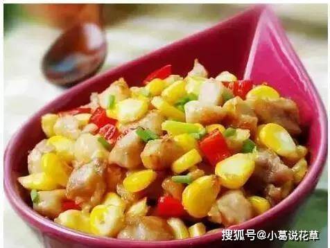 5、锅内留底油,将姜末、葱末炒香,倒入玉米炒至变色。
