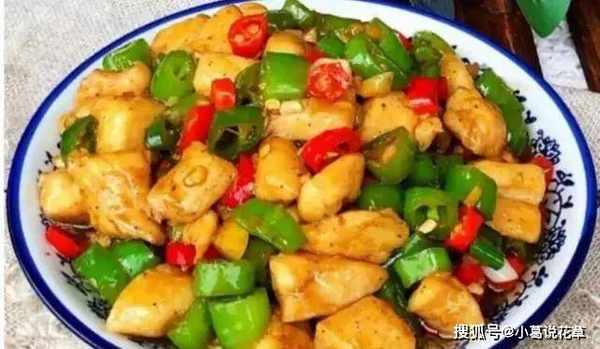 材料:鸡胸肉1块,青红椒各4个,蒜瓣