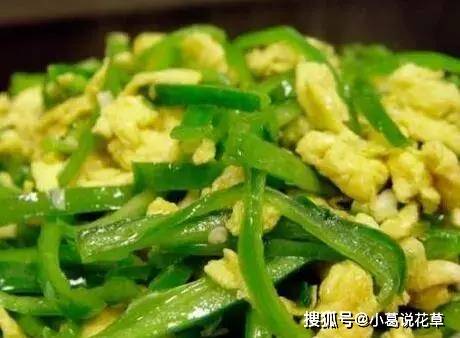 5.炒至青椒变软,将蛋液均匀的洒在青椒上,蛋液和青椒混合在一起才更入味。