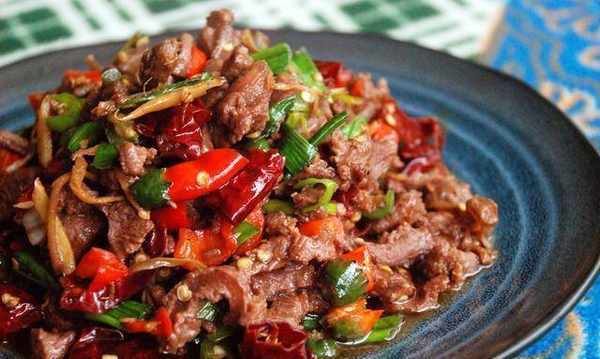 原料:牛肉;干辣椒;姜;蒜;洋葱;白酒;味精;山椒油可选;少许粗粉