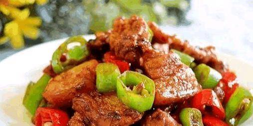 6。倒入切碎的绿辣椒和红辣椒,翻炒几分钟。最后倒入一勺老抽和一勺糖调味,搅拌均匀即可食用。