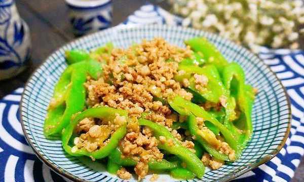 材料:青椒3个,猪肉馅200克,盐2克,蚝油3汤匙,食用油适量