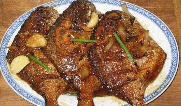 鱼炖入味后,小心取出。锅里还有汤。高火收汤,越熬越稠。这时放入炸好的金蒜,将收好的汤和蒜浇在扁鱼上。能。