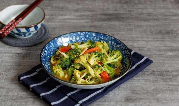 1.西兰花摘成小朵,焯水沥干待用,西红柿切小块,姜切碎