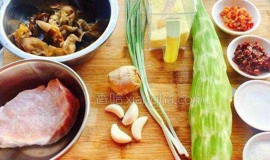 配料:莴笋一根、里脊肉150克、泡发木耳50克、小葱三根、姜一小块、大蒜四颗、郫县豆瓣50克、泡辣椒50克、米醋30克、白糖30克、味极鲜酱油一小勺、鸡精3克、玉米淀粉10克、料酒一勺烹饪步骤:1.准备所有食材。
