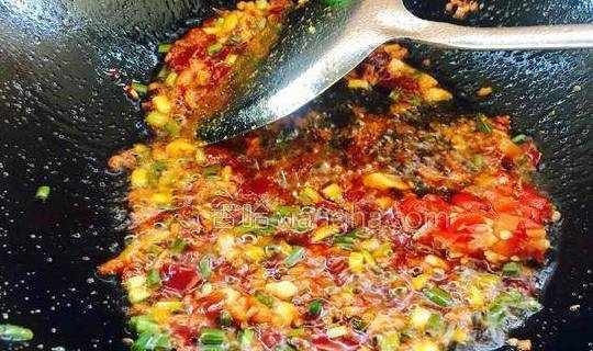 8.放入葱姜蒜煸炒出香味,放入剁辣椒炒香。