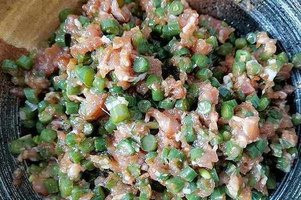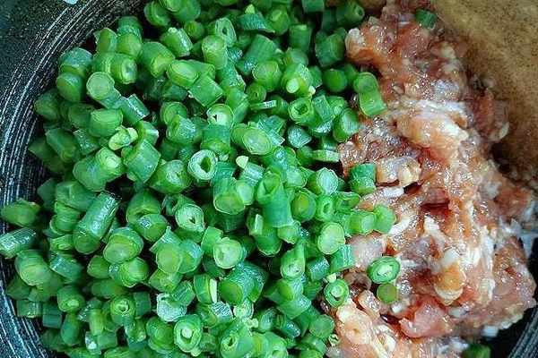 3:将肉馅和豇豆丁混合搅匀,就可以使用了。