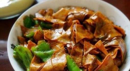 食材:千张,青尖椒,葱花,大蒜,老抽,油,淀粉