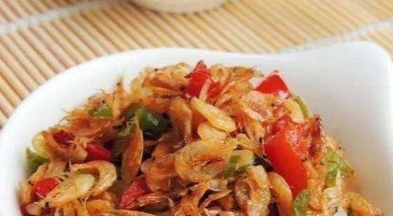 材料:虾皮、红椒、青椒、油、盐、葱、蒜、生抽、料酒