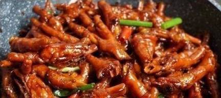 3.放入郫县豆瓣酱,小火炒出红油,倒入糖、生抽、老抽、热水,盖锅盖将鸡爪炖到软糯(约半小时),开锅盖大火收汁,临出锅放入小米辣。