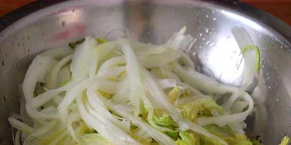 1、白菜尽量撕得碎一点,这样可以使它更加容易入味。
