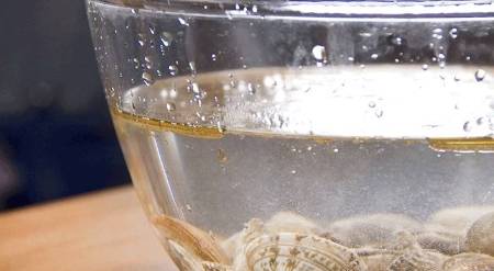 1、花蛤泡到淡盐水里,2~3个小时