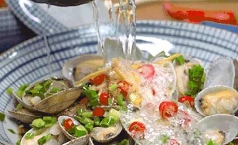 花蛤清洗干净后用开水烫至开口捞出浇上提前准备好的酱料汁撒上大把的葱花再把菜籽油烧得滚烫淋进去就可以了淋油的瞬间葱香四溢,诱人口水被热油烫过的葱花只剩辛香的滋味跟花蛤的鲜美是绝搭