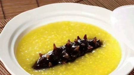小米杂粮煨辽参:选用辽参,其肉质肥厚、微量元素全,配上小米、红豆、薏米、燕麦等原料营养更佳,熬制3个小时。常喝该粥养血润燥、强筋壮骨。