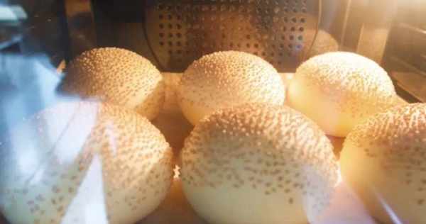 ▲烘烤汉堡胚的实际温度在180°左右,实际操作时要依据各个烤箱的性能来调整。