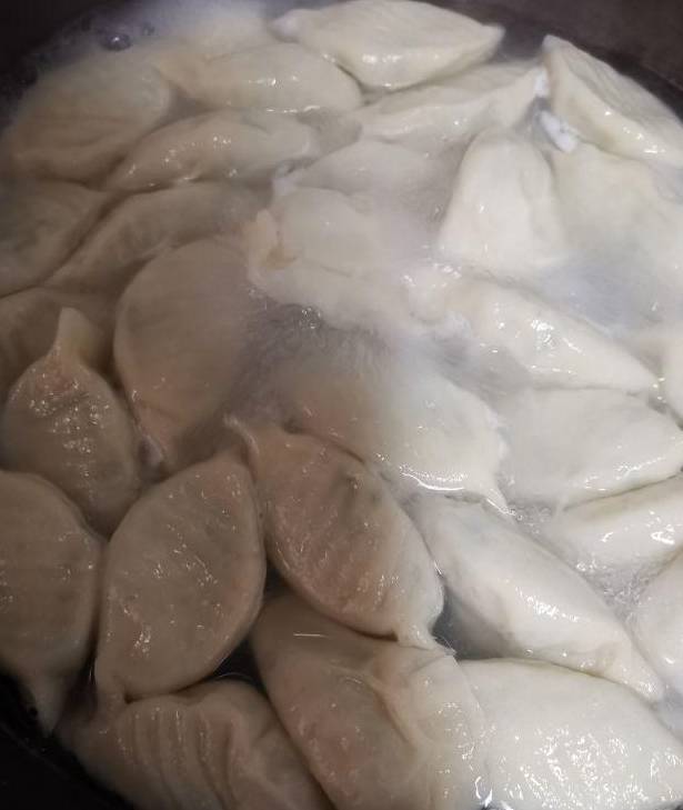 6、起锅放水,水开后放入少许盐,下入饺子,用勺背轻轻推开,以防粘连。煮熟即可。