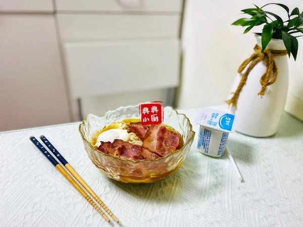 早餐三:培根鸡蛋面。培根真的是小朋友最爱的吃的早餐之一了,早上先把培根煎一下,面条煮好之后,把培根肉放上面,有肉有面一大碗孩子都能吃得完。