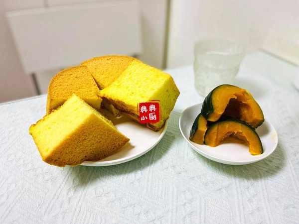 早餐一:原味戚风蛋糕,贝贝南瓜。前段时间在老家带了不少鸡蛋回来,这次的蛋糕就是用这些鸡蛋做的,但土鸡蛋蛋清似乎比平时买的少一些。六寸的戚风我用了五只鸡蛋了,做出来果然很漂亮,颜色也好看。