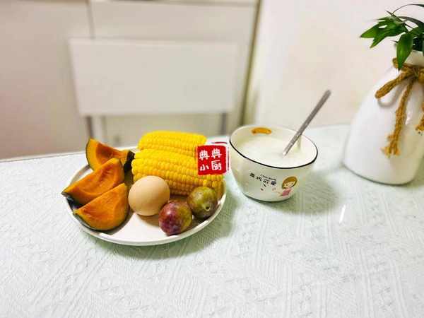 早餐五:蒸玉米,蒸贝贝南瓜,鸡蛋,白粥。这一餐还是很健康的,周五了肯定需要清一下冰箱的库存,所以有什么食材多出来的都一起整一餐了。