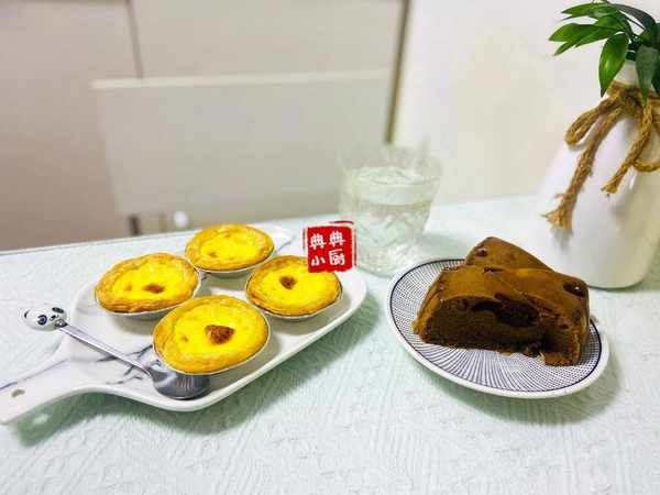 早餐四:萄式蛋挞,红糖发糕。发糕是半成品,直接蒸一下就行了。蛋挞液是前一天晚上配好放冰箱里的,早上起来直接烤,孩子一直说还是现烤的蛋挞更好吃一些。