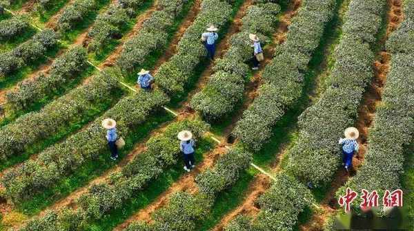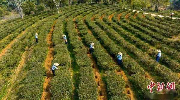 近日,广西壮族自治区梧州市苍梧县六堡镇茶园春意盎然,嫩芽勃发,采茶工们在茶园里采摘春茶。梧州六堡镇是“中国名茶之乡”,盛产六堡茶。六堡茶属黑茶类,有1500多年种植历史,产品远销东南亚各国及粤港澳地区,是著名的“侨销茶”。2022年11月,“中国传统制茶技艺及其相关习俗”成功入选联合国教科文组织人类非物质文化遗产代表作名录,广西六堡茶制作技艺在列。