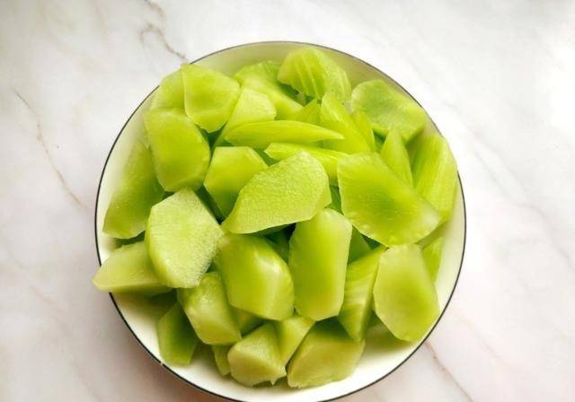 步驟二:萵苣去皮清洗幹凈,切成滾刀塊。