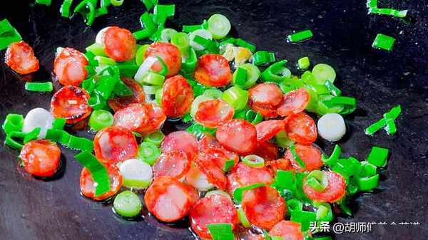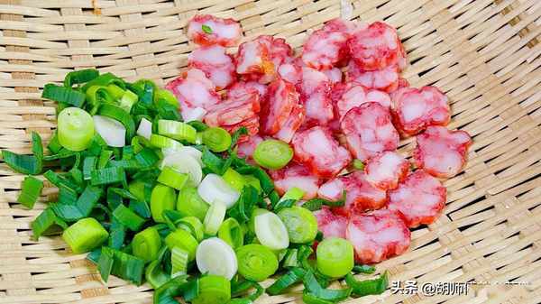 【原材料準備】:榆錢300克、玉米面50克、面粉50克、大蒜葉100克、幹辣椒5克、甜腸1根、食鹽、食用油適量。