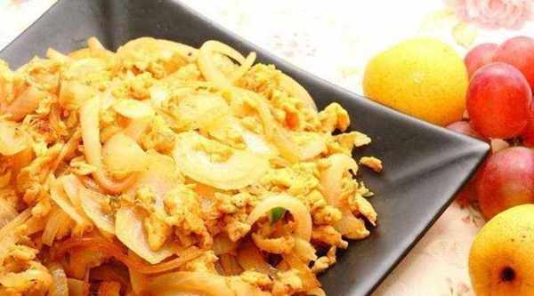 材料:雞蛋3個、洋蔥400克、生抽10克、雞精2克、蠔油10克、食鹽2克、花生油40克、香油5克