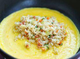 多數人會將剩餘的米飯直接做成炒米吃,而在國外,許多人會喜歡把米飯做成蛋包飯來吃,將雞蛋煎成厚薄均勻的蛋皮,包上炒好的米飯,夾上自己喜歡吃的一些蔬菜,沙拉醬,做法是非常簡單的,這樣做出來的蛋包飯不僅不用浪費糧食,還能吃出新感覺,新口味,著實是一道非常不錯的佳肴,同樣的,我們也可以把吃剩下的米飯,在鍋裡面一炒,然後加上這種特殊的工藝,制作出蛋包飯,這樣一道午餐就做好瞭,簡單又適用,還能給人一種新的感覺,是非常美妙的一件事情,接下來我們就一起來學習這道蛋包飯的做法