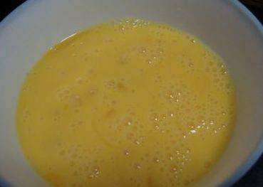 第三步,2個雞蛋打在碗裡,加上玉米淀粉,倒入適量的清水,打散備用