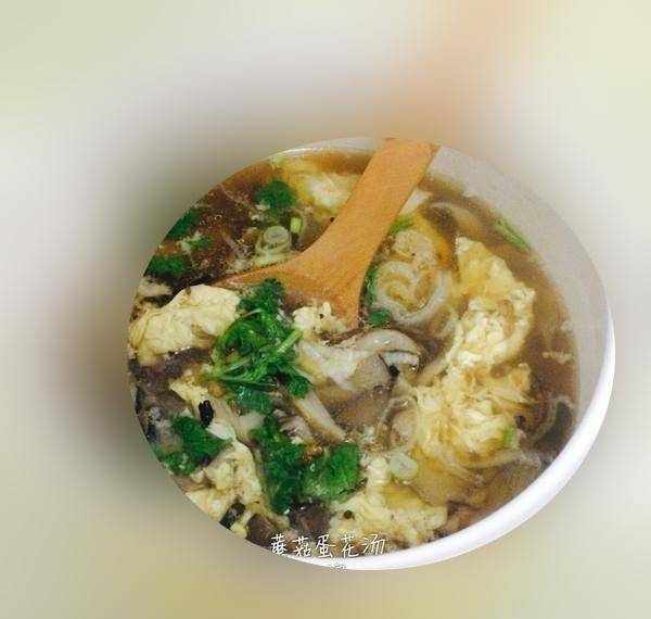 材料: 平菇、雞蛋兩個、蔥、香菜、鹽、油;