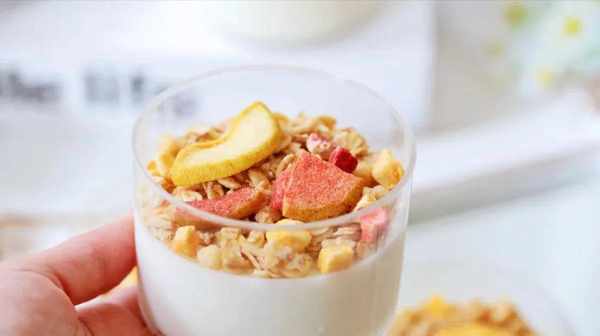6、取出荔枝凍放入適量的麥果脆即可