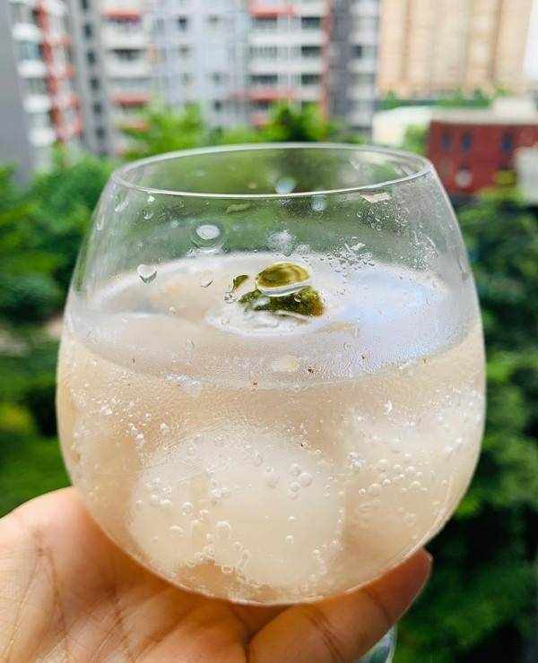 【材料】荔枝10顆,氣泡水適量,冰塊適量