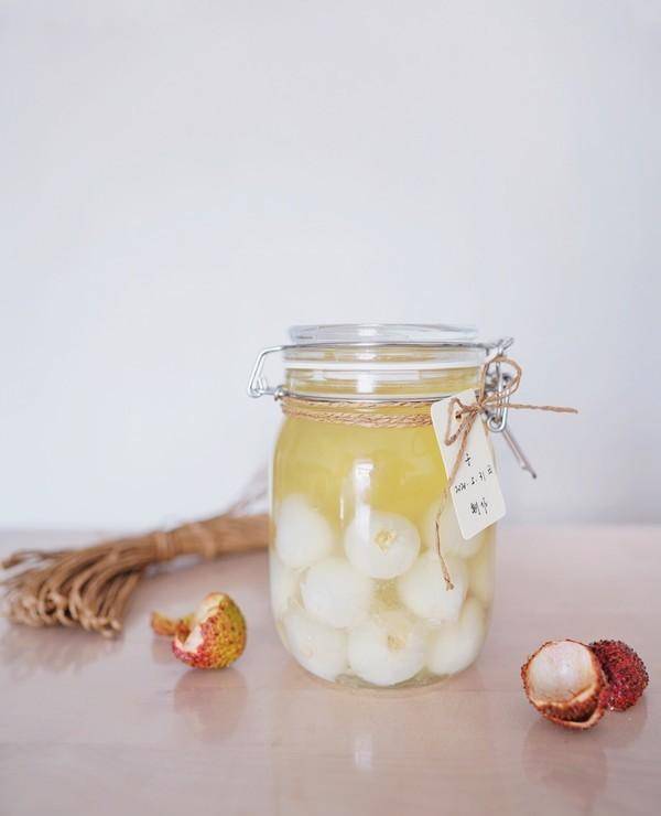 2、將荔枝剝殼,放入玻璃瓶內