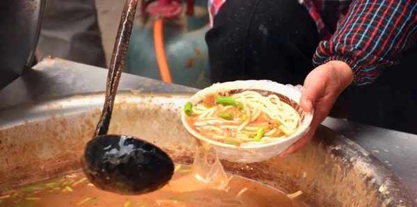 盆面條常在露天的店外支個大鍋售賣。