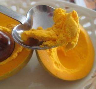 蛋黃果的果實很獨特,果肉就像蛋黃一樣幹癟癟的,沒有一絲水分,一般人吃蛋黃果必須配水或者湯汁才能下咽。另外蛋黃果還有一個特殊之處,它的果實並非時尚之後就能馬上吃,蛋黃果在時尚之後采摘還得放置一周左右才可以安全食用。