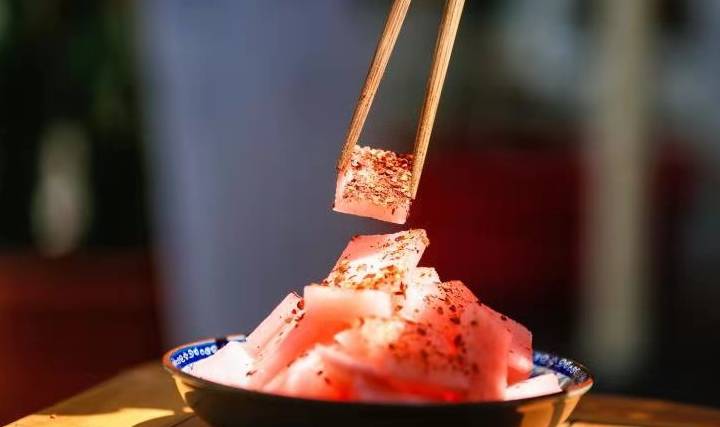 威寧人的餐桌上,一定少不瞭“威寧三白”,一碗水煮大白菜,清甜可口,一年四季都必須占據餐桌素菜“C”位。年夜飯餐桌上,水煮大白菜一上桌,一不留神就被“搶光”瞭;再來一碗熗炒蓮花白,蒜末配上貴州幹辣椒,炒菜時配上些許生抽、鹽等調料,味道鮮美、清淡,是年夜飯餐桌上的必備良品;最後的神仙配菜一定是涼拌酸蘿卜,又白有大的白蘿卜,切片後放入大容器中,加入紅醋、薑片、大蒜等佐料,密封保存一周左右即可食用,配上辣椒面,絕瞭!