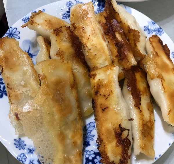 不做韭菜盒子的時候,婆婆可能會做一鍋煎餃,這邊的煎餃是長方形的,和餃子不一樣,應該說這邊的餃子會根據做法不同而有不同的包法,煎餃的話,用這樣的長方形更容易煎入味,皮薄而筋道,裡面是韭黃牛肉,韭黃香牛肉嫩滑,搭配在一起簡直絕瞭,外皮烙的金黃誘人,而且還烙出瞭冰花,脆脆的薄薄的一咬就掉渣,真是好吃不膩,但是劉爽還是很嫌棄,覺得一大早吃這麼油膩的早餐不好消化。