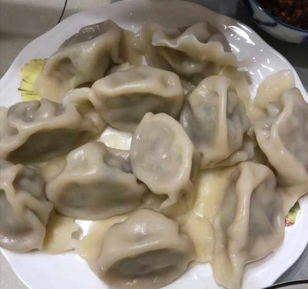 婆婆也特別愛煮水餃,早上一碗餃子裡面葷素結合,有時候是韭菜豬肉有時候是芹菜豬肉,還有白菜豬肉或者素三鮮,皮薄肉大汁水多的水餃吃起來有嚼勁,特別香,劉爽的老公喜歡配上今年的新蒜,一口餃子一口蒜,吃得特別過癮。而劉爽的婆婆不嫌麻煩,喜歡單獨做個涼菜搭配一起吃。
