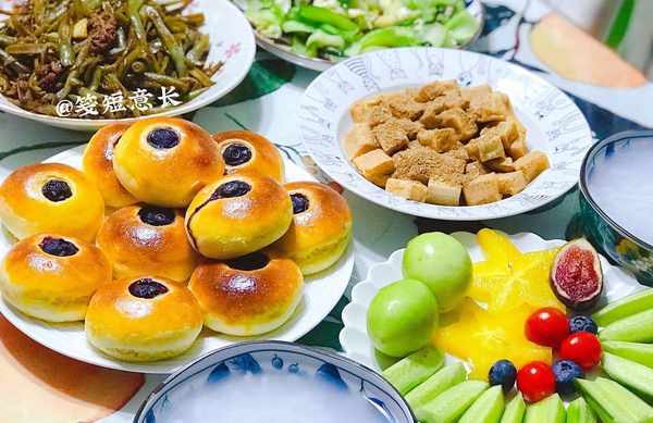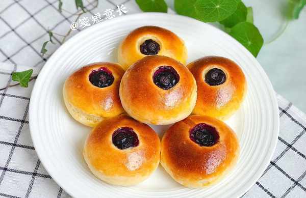 食材清單:面粉150克、山藥150克、雞蛋2個、酵母粉3克、白砂糖適量、藍莓果適量