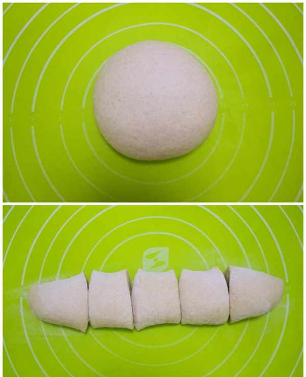 取出發酵好的面,揉面排氣,再揉成光滑的面團,分成大小均勻的小面劑子。