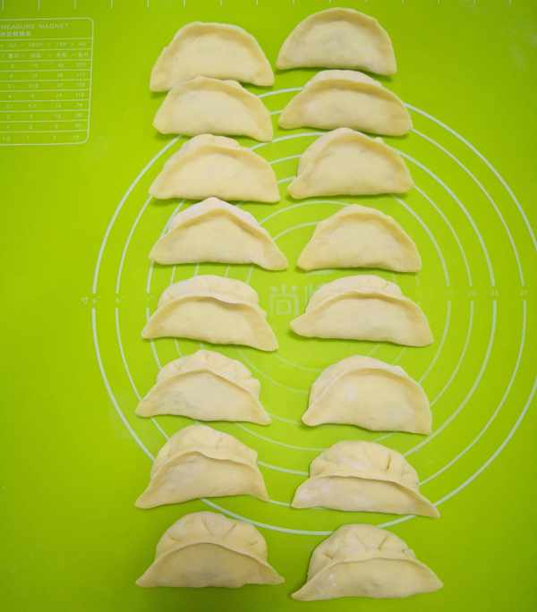 把面團分成大小均勻的小面劑子,再把每一個小面劑子都搟成中間厚、邊緣薄的圓面片,加適量餡,按照自己的手法包成餃子狀,餃子全部包好後,這時候包子二發也差不多瞭。