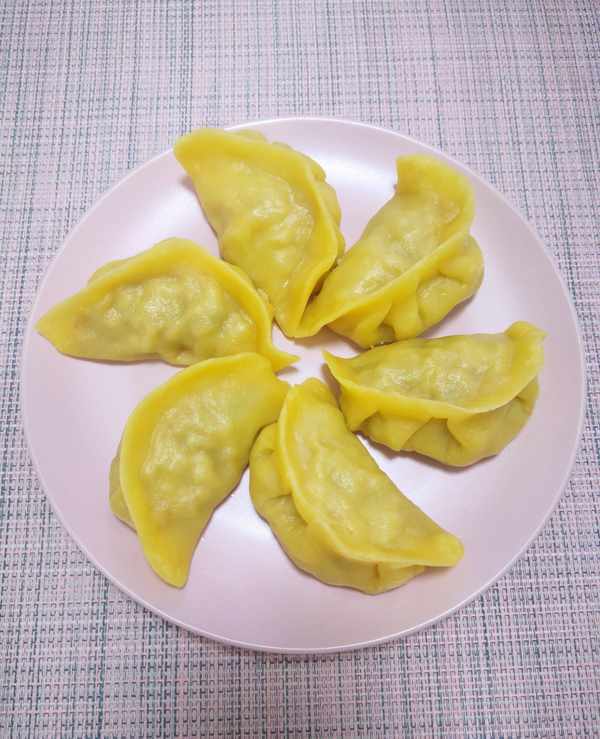 蒸餃面團:玉米面粉、高筋小麥面粉、開水。