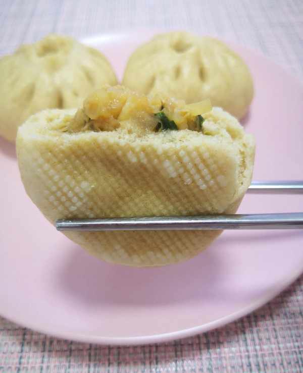 外皮柔軟還帶點勁道,玉米清香味濃又細膩,餡料鮮美多汁,有葷有素營養全。