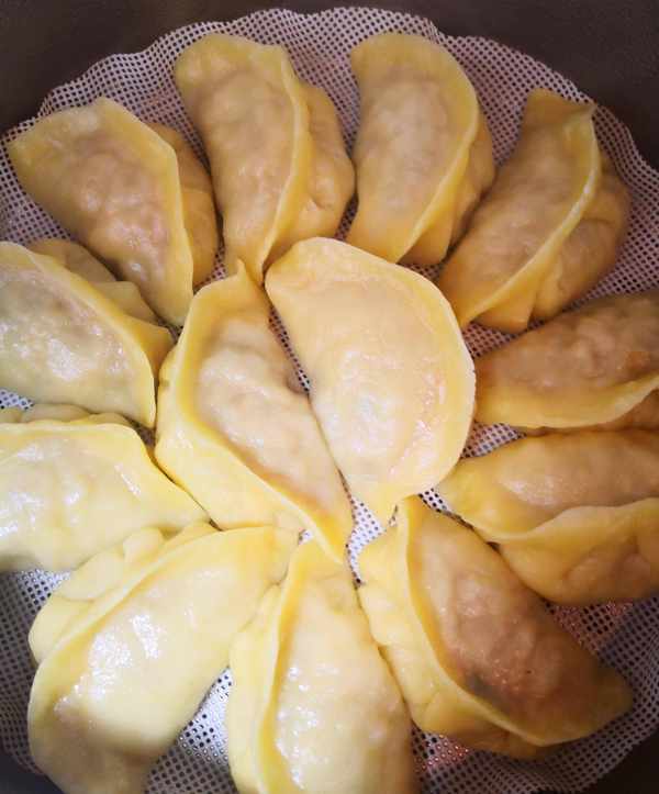 3.做蒸餃用燙面,外皮更加柔軟,用高筋面粉代替普通中筋面粉,口感更勁道,放涼瞭也不發硬。