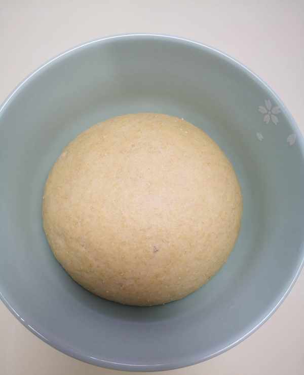 全麥包子面團:全麥面粉、中筋小麥面粉、酵母、溫水。