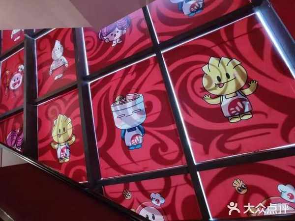 樓梯設計瞭沙縣小吃的品牌文化墻,可以看到熟悉的沙縣小吃IP形象。
