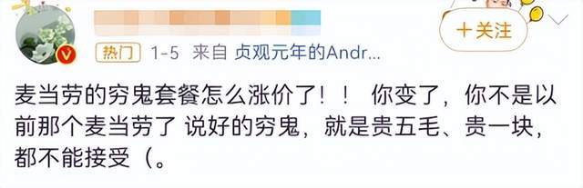 好比看到麥當勞窮鬼套餐從12.9元漲到13.9元,那叫一個太eMo瞭。